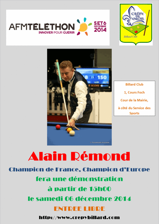 A l'occasion du Téléthon 2014, nous aurons le plaisir d'accueillir Alain Rémond qui fera une démonstration de ses talents à partir de 15h00.